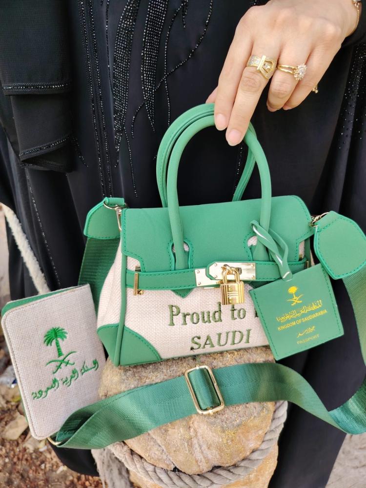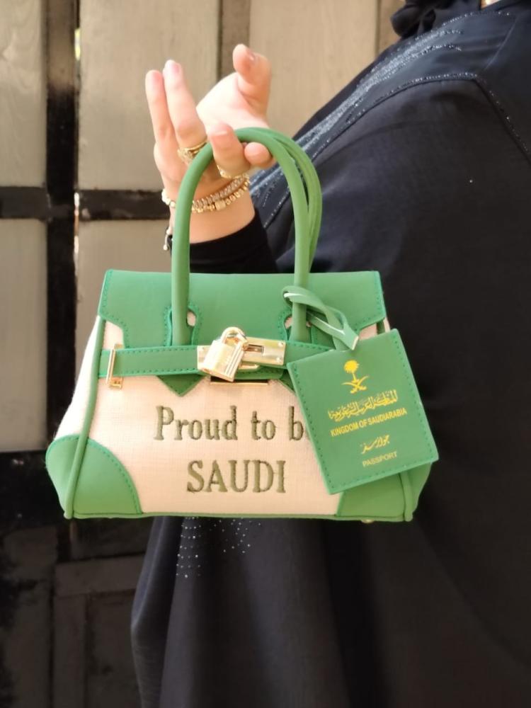 شنطة أنيقة وفاخرة تجمع بين الأصالة والفخر الوطني، صُممت خصيصًا لتعكس هوية المملكة وروح الانتماء.